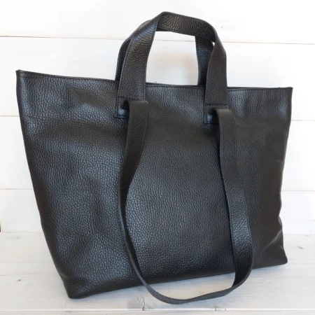 Czarna torebka damska wykonana z wysokiej jakości skóry naturalnej przykuwa uwagę nieszablonowym krojem, który podkreśla jej wyjątkowy charakter. Torebka posiada dwa solidne uchwyty, które umożliwiają wygodne noszenie jej w ręku. Forma torebki jest usztywniana, co nie tylko podnosi jej wytrzymałość, ale również zapewnia, że torebka zachowuje swój kształt, nawet gdy jest w pełni wypełniona. Dzięki temu możesz bez obaw nosić w niej różnorodne przedmioty, nie martwiąc się o deformację kształtu. Ciekawym elementem ozdobnym są skórzane troczki po bokach, które dodaje torebce niepowtarzalnego charakteru. Dzięki troczkom można torebkę poszerzyć i uzyskać więcej miejsca w środku.